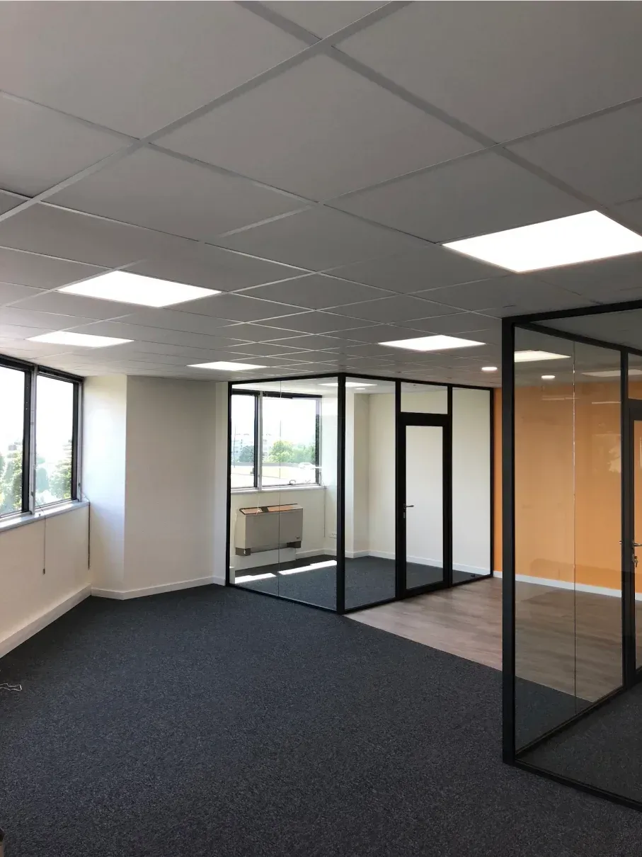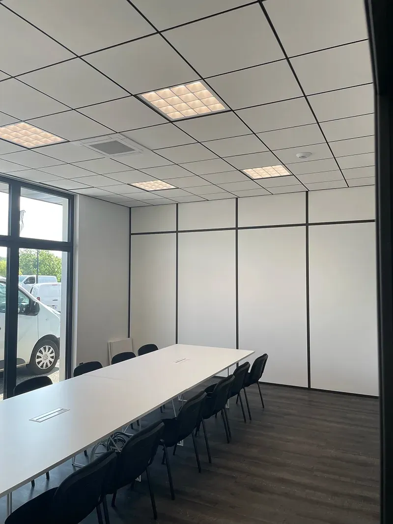 Mise en place de cloisons en placoplatre, vitrées, amovibles ou phoniques pour optimiser l’agencement et le confort acoustique.